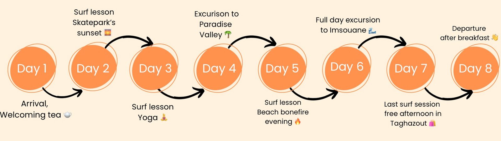 Zeri Surf Camp is an all-inclusive Moroccan surf experience designed to help you improve your surf skills, live healthily, and connect deeply with the authentic culture of Morocco.
